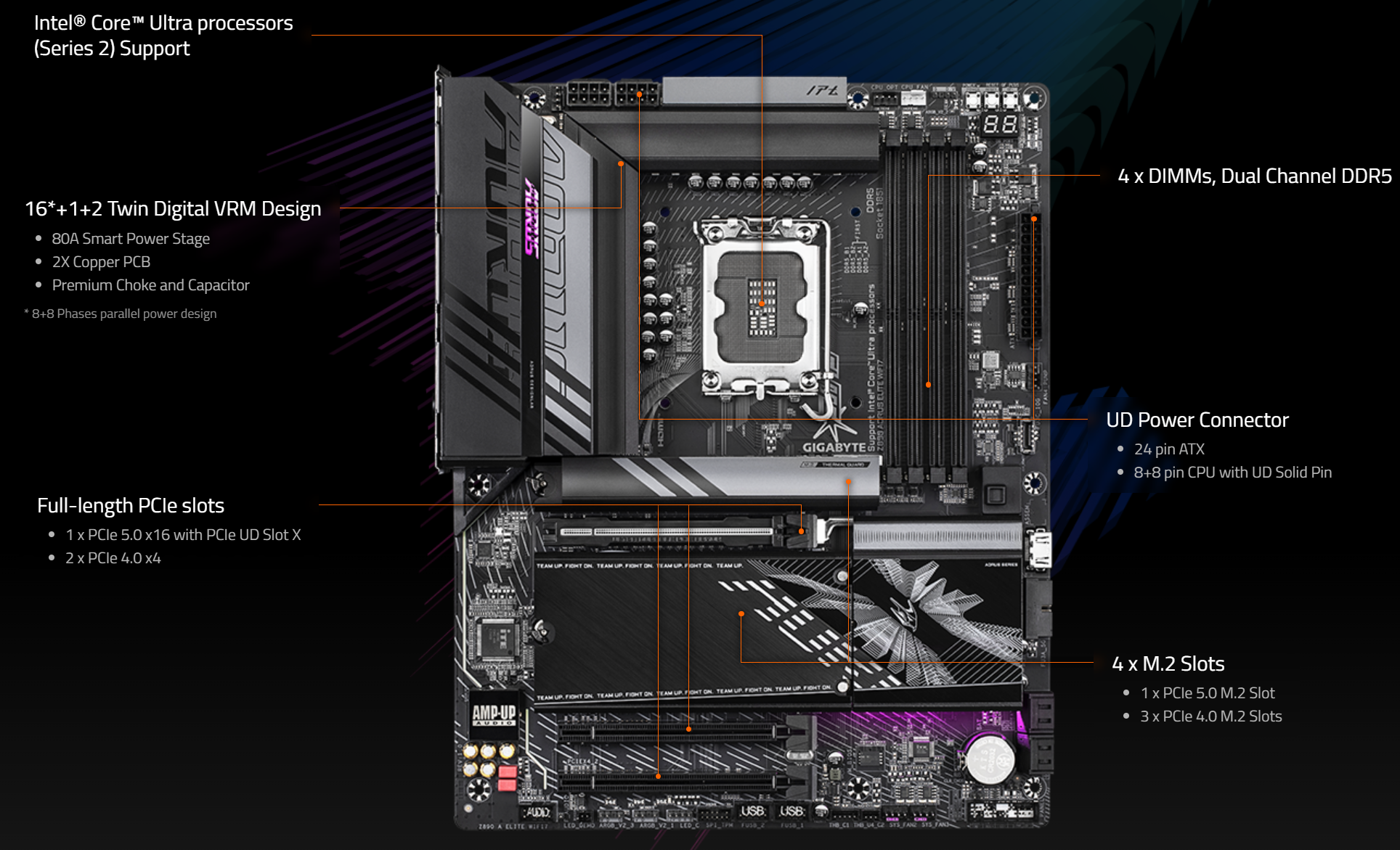 - PCIe UD Slot X: PCIe 5.0 x16 slot with reinforced durability