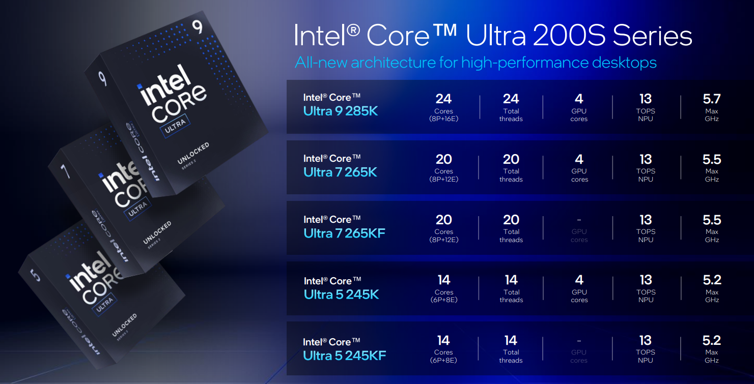 Of course, there are a few new CPUs launching in this series, with the lower specification Core Ultra 5, and the higher spec flagship Core Ultra 9. As I said, the Core Ultra 7 is a bit of a sweet spot, offering high-end thrills without the added rendering capabilities you get from the higher core counts of the Core Ultra 9.