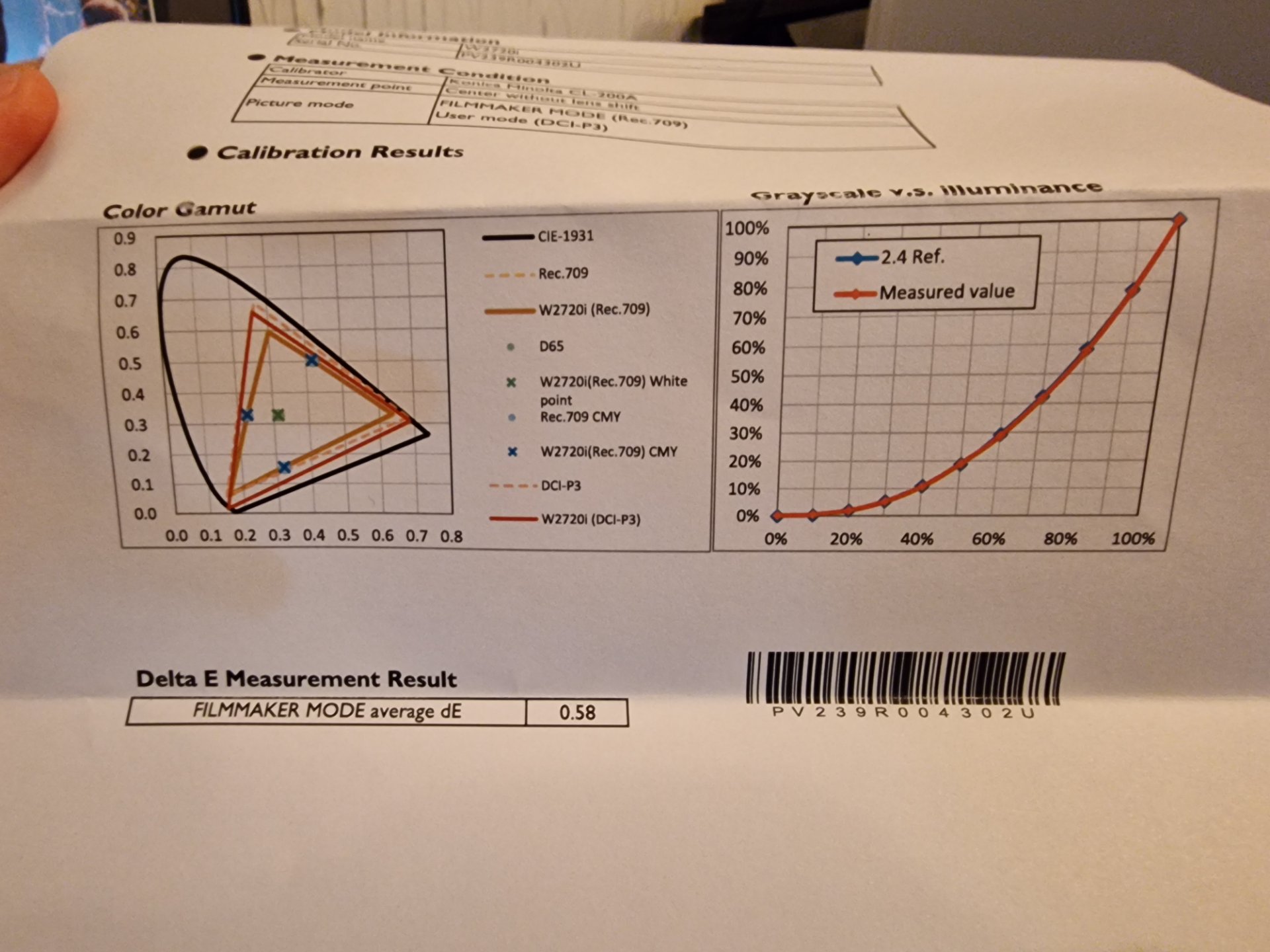 One thing I really like about this projector, is that it comes pre-calibrated out of the box. They list all the features they’ve used, and tell you how to achieve. In this case, we can see the results for Rec 709 and DCI-P3, covering both SDR and HDR content. It achieves a fantastic Delta-E colour accuracy of just 0.58!
