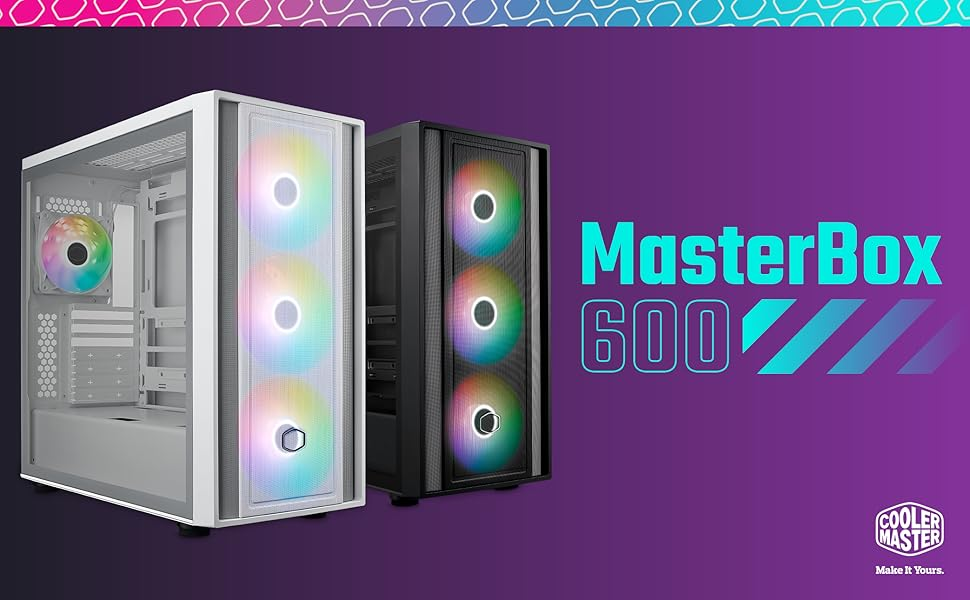 - Simply More Airflow – The MasterBox 600 throws down the mid-tower performance gauntlet with its full-coverage FineMesh front panel and unobstructed triple 140mm intake fan capacity; Supports up to 7 x 120mm case fans (or 5 x 140mm, 1 x 120mm)