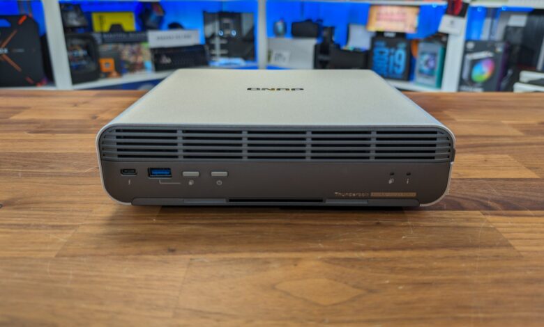 With 2.5G and 10GbE as standard, throughput is not going to be an issue, as long as you have a pretty robust system with those connectivity options as standard on your motherboard, or with an add-in card but what about laptop devices for when you’re on the go? Well for starters, you wouldn’t be hauling a typical NAS off on your jolly’s while sipping a margarita at your hotel, but then what we’re looking at today in the form of the TBS-h574TX isn’t your typical NAS, because beyond the fast Ethernet ports, it also comes equipped with Thunderbolt 4 for up to 20 Gbps speeds when you need it most, as well as two USB 3.2 Gen 2 ports, giving 10Gbps speeds as well.