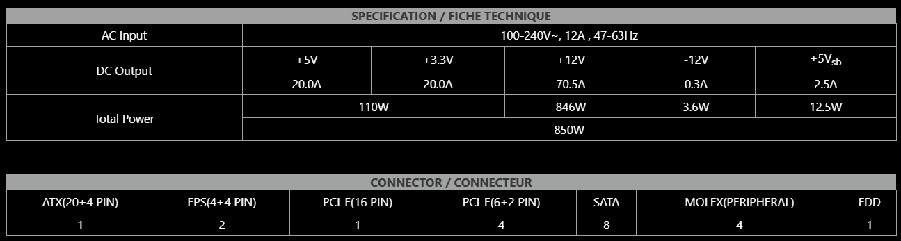 • DURABLE DESIGN – A LLC half-bridge with DC/DC converter and an active PFC design ensure a reliable output (OCP, OVP, OP, OTP, SCP, UVP protection). The MAG gaming power supply comes with a 7-year limited MSI warranty